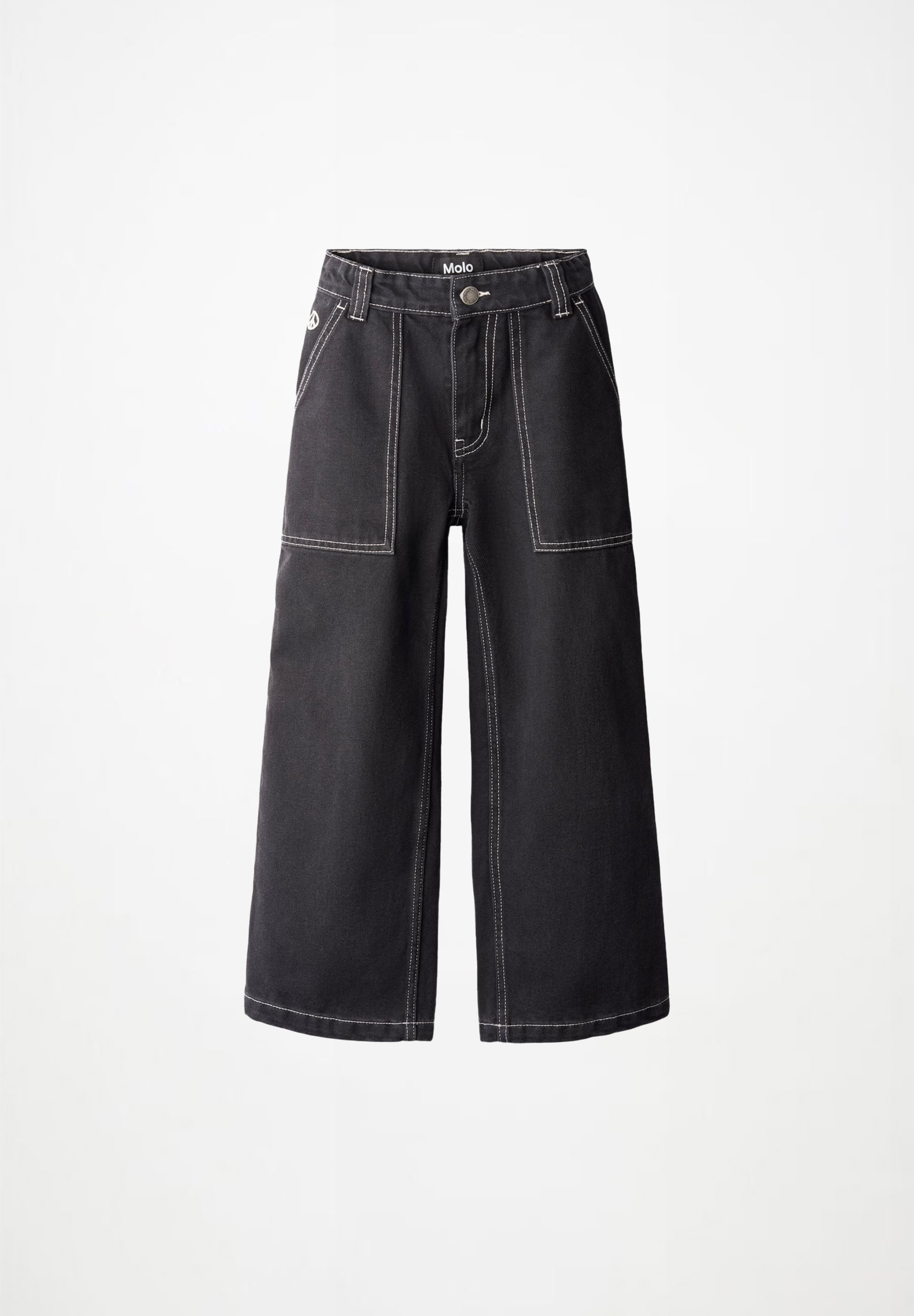Джинсы Molo для мальчика. Черные джинсы из органического хлопка с широкими штанинами и характерной контрастной строчкой. Брюки с большими передними карманами, шлевками для ремня и регулируемым эластичным поясом для оптимальной посадки. В самых маленьких размерах (92-134) предусмотрена практичная кнопка, а в размерах 140-176 — классическая джинсовая пуговица. Состав: 64% хлопок, 33% полиэстер, 3% вискоза.