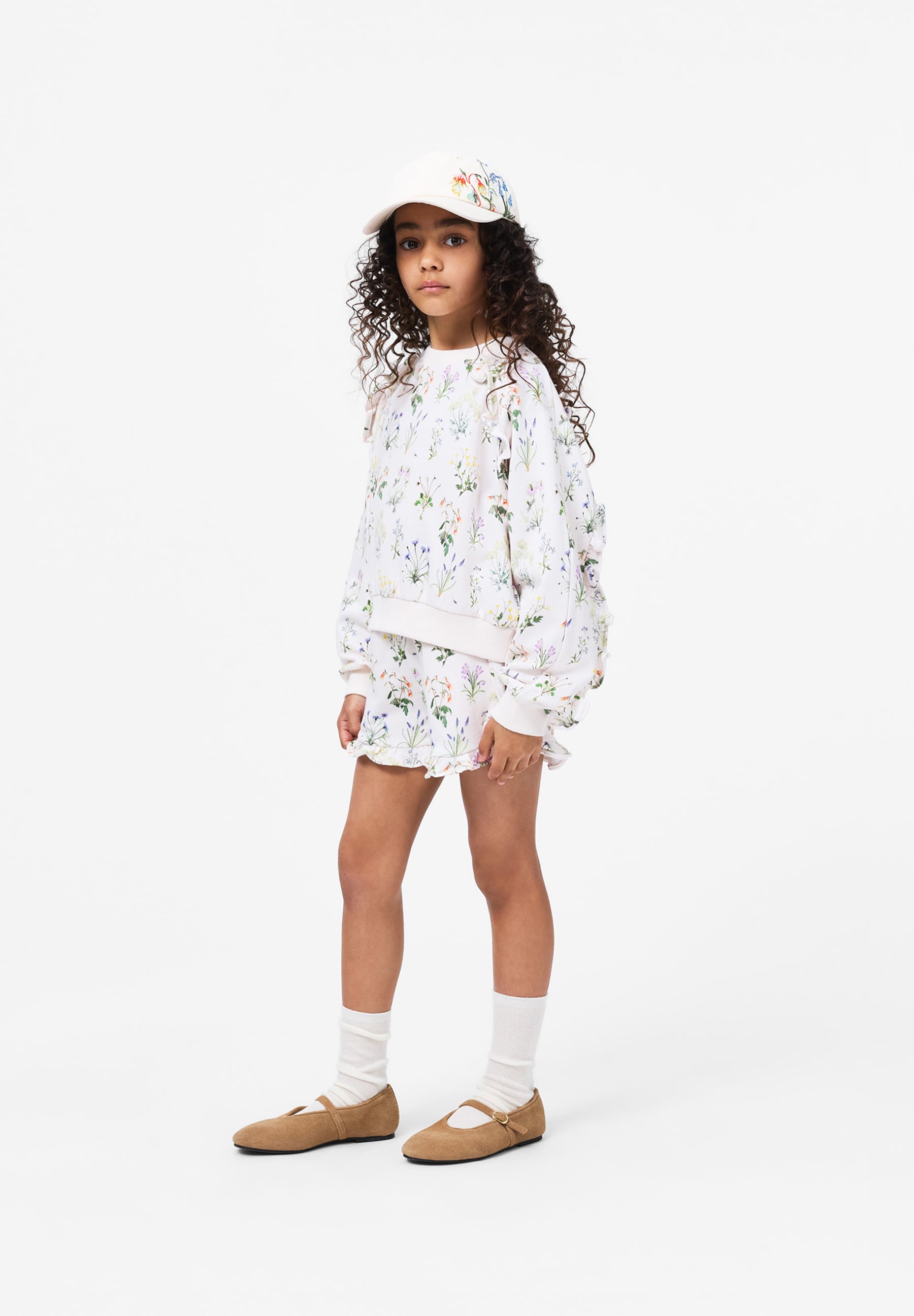 Бейсболка Molo для девочки. Классическая кепка кремового цвета с яркой цветочной вышивкой. Кепка с слегка изогнутыми полями регулируется сзади. Рекомендации по выбору размера: S/M = 53 см, M/L = 56 см. Состав: 100% хлопок.