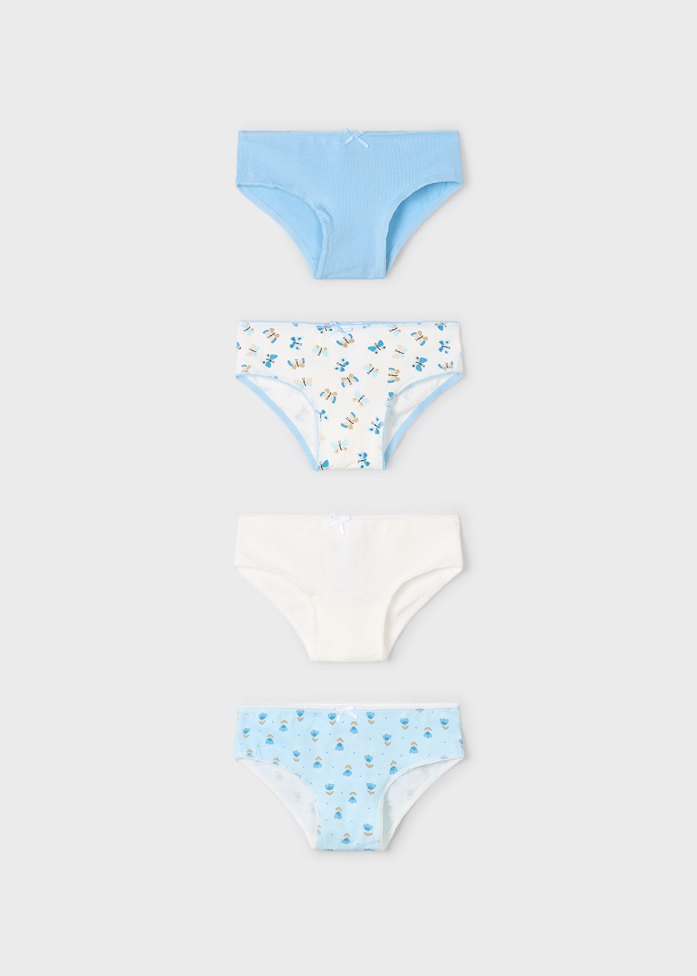 Комплект трусов Mayoral для девочки. В комплекте 4 шт. Выполнены из хлопка с добавлением эластана.
