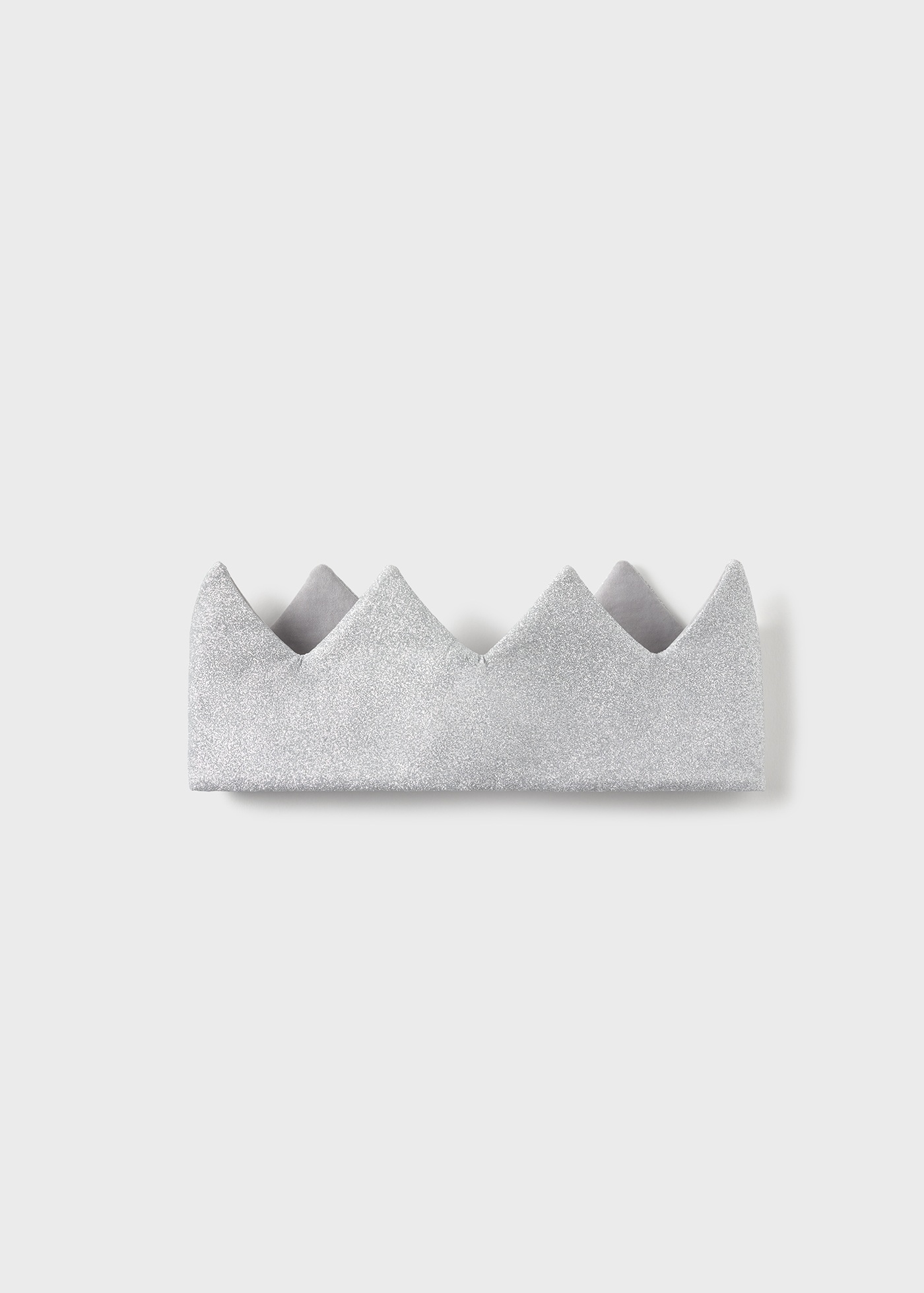 Корона из блестящей ткани в серебристом цвете, выполненная в форме треугольных зубцов. Стиль напоминает элементы праздничных аксессуаров, подходящих для создания волшебных или королевских образов. Акцент на сияющей поверхности и лаконичном дизайне. Отлично подходит д ля фотосессий, тематических мероприятий и детских праздников, особенно в сочетании с платьем или костюмом в пастельных или нейтральных оттенках. Ткань мягкая на ощупь, с лёгким блеском, что добавляет изделию яркости и праздничности.