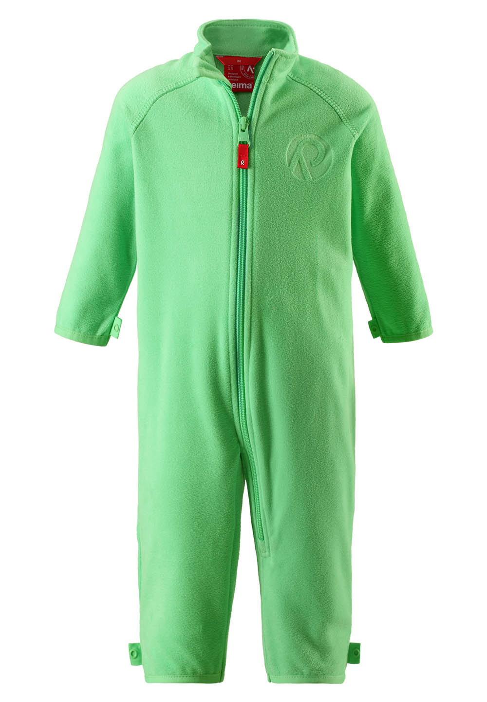 Флисовый комбинезон для малышей. Выводит влагу наружу. Теплый, легкий и быстросохнущий флис. Может пристегиваться к верхней одежде Reima® кнопками Play Layers®. Эластичные манжеты на рукавах и брючинах. Молния по всей длине с защитой подбородка. Аппликация.