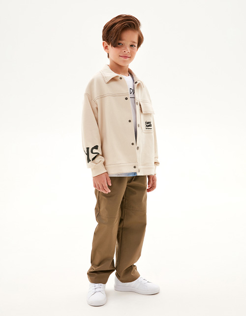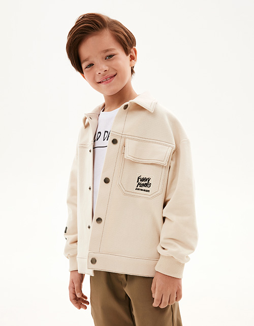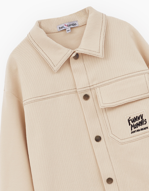 Трендовый жакет оттенка экрю от BellBimbo для мальчика. Прямая объёмная модель. Спущенная линия плеча. Мягкие эластичные манжеты. Накладной карман декорирован вышивкой. Комфортная застёжка на кнопки. Комбинация материалов: твил и тактильно приятный футер. Состав: 97% хлопок, 3% эластан.