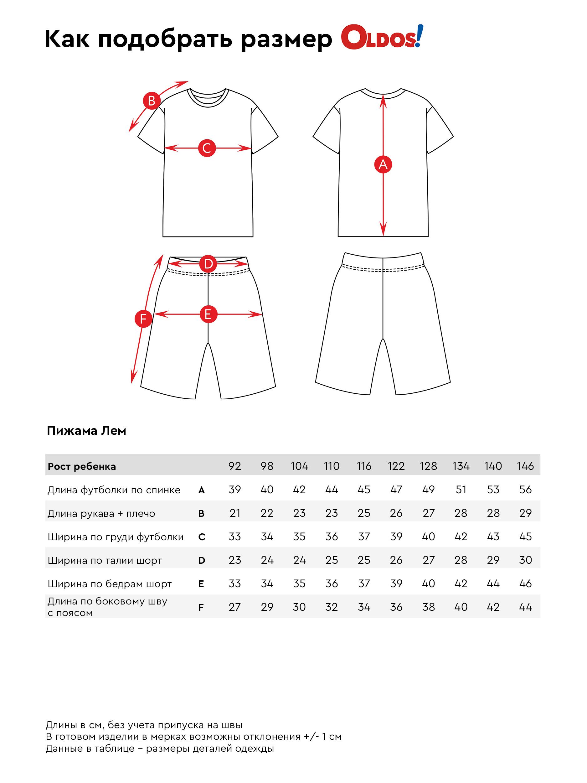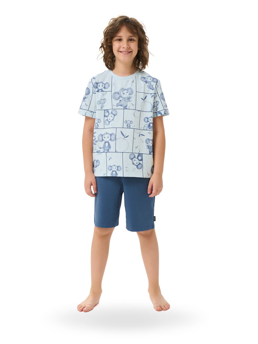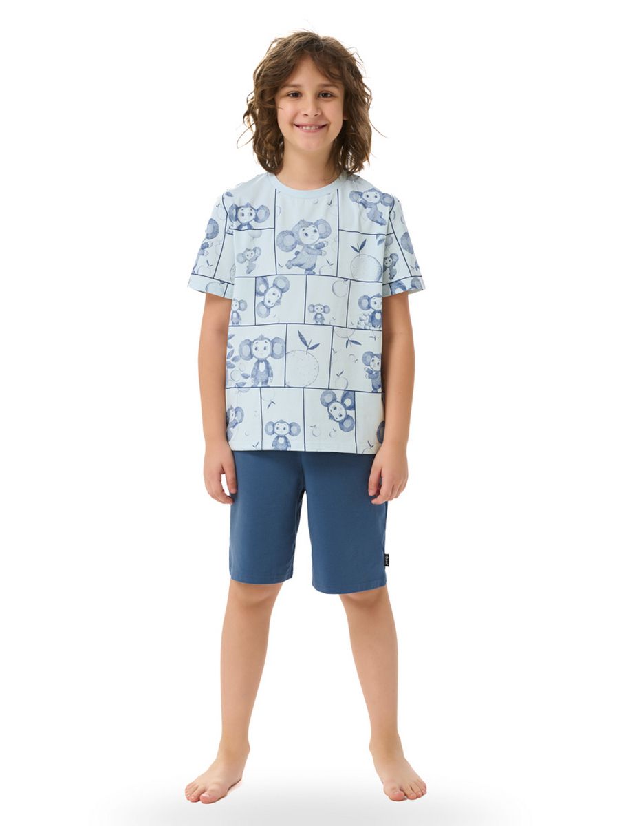 Пижама для мальчиков Лем от Oldos — это практичный комплект из футболки и шорт, который идеально подходит для уютного сна и домашнего отдыха. Принт с эпизодами приключений легендарного Чебурашки на футболке добавляет поднимает настроение, а однотонные шорты делают комплект универсальным. Пижама выполнена из мягкой и дышащей ткани, которая на 92% состоит из хлопка и на 8% из эластана. Материал эластичный и прочный, обеспечивает комфортное прилегание, не сковывая движения, а также сохраняет свои свойства после многократных стирок. Футболка прямого силуэта с короткими рукавами создана для свободы движений. Притачная планка по горловине сохраняет аккуратный внешний вид. Шорты средней длины с мягким поясом на внутренней резинке обеспечивают удобную посадку и не создают дискомфорта во время отдыха или сна. Внешняя ткань 92% хлопок, 8% эластан.