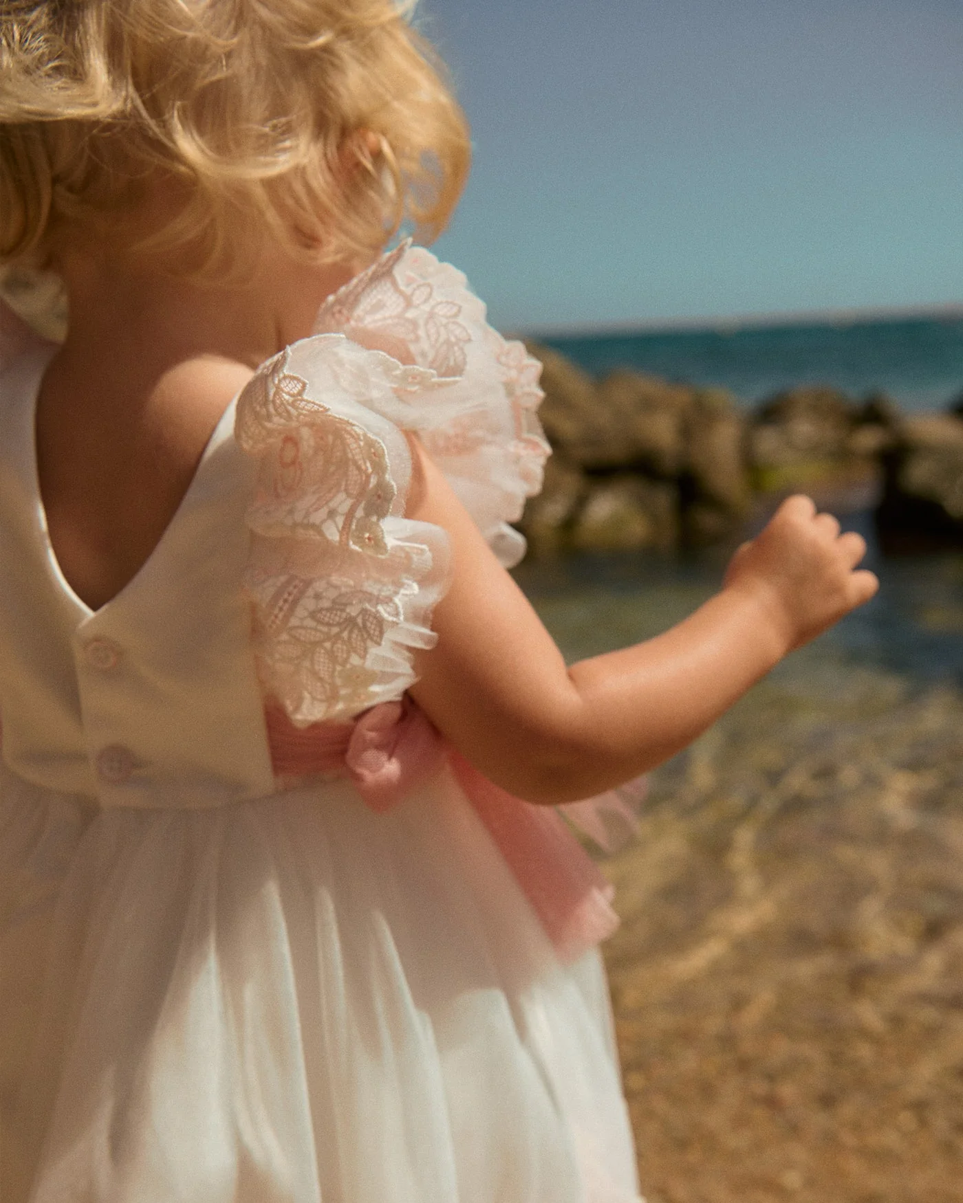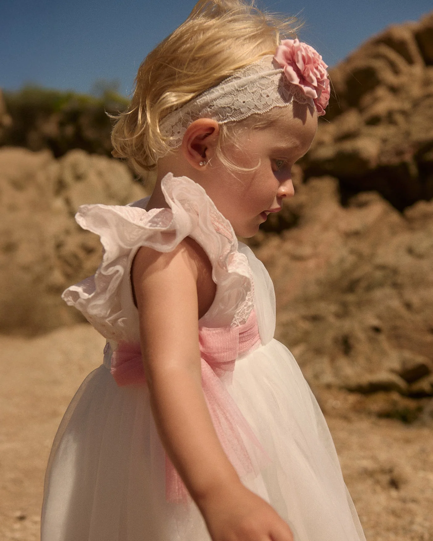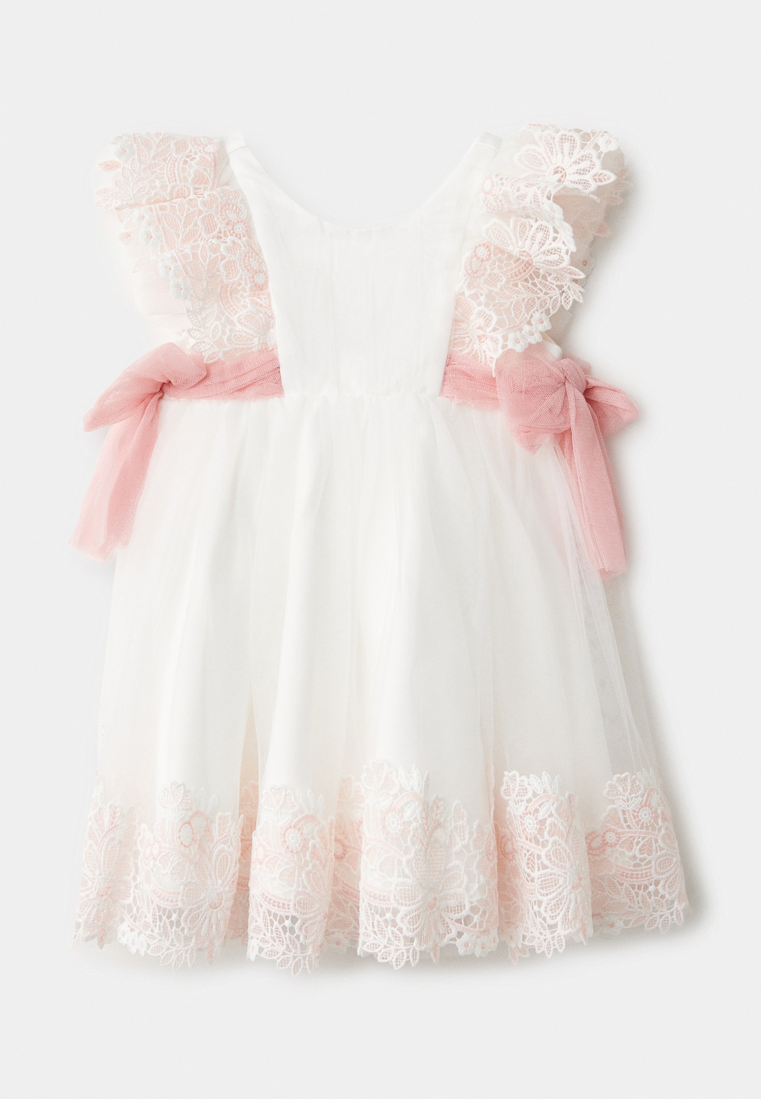 Изысканное вечернее белое платье для девочек из коллекции Abel & Lula. Выполнено из вышитого тюля с двухцветными цветочными акцентами, дополненное изящными тюлевыми завязками по бокам для элегантного вида. Особенности: вышитый тюль со сложными цветочными узорами; двухцветная вышивка по подолу и рукавам; мягкая тюлевая накладка для сказочного силуэта; тюлевые завязки по бокам; полностью на подкладке для комфорта. Застежка на пуговицы на спинке. Состав: 55% полиамид, 45% полиэстер; подкладка: 100% хлопок.