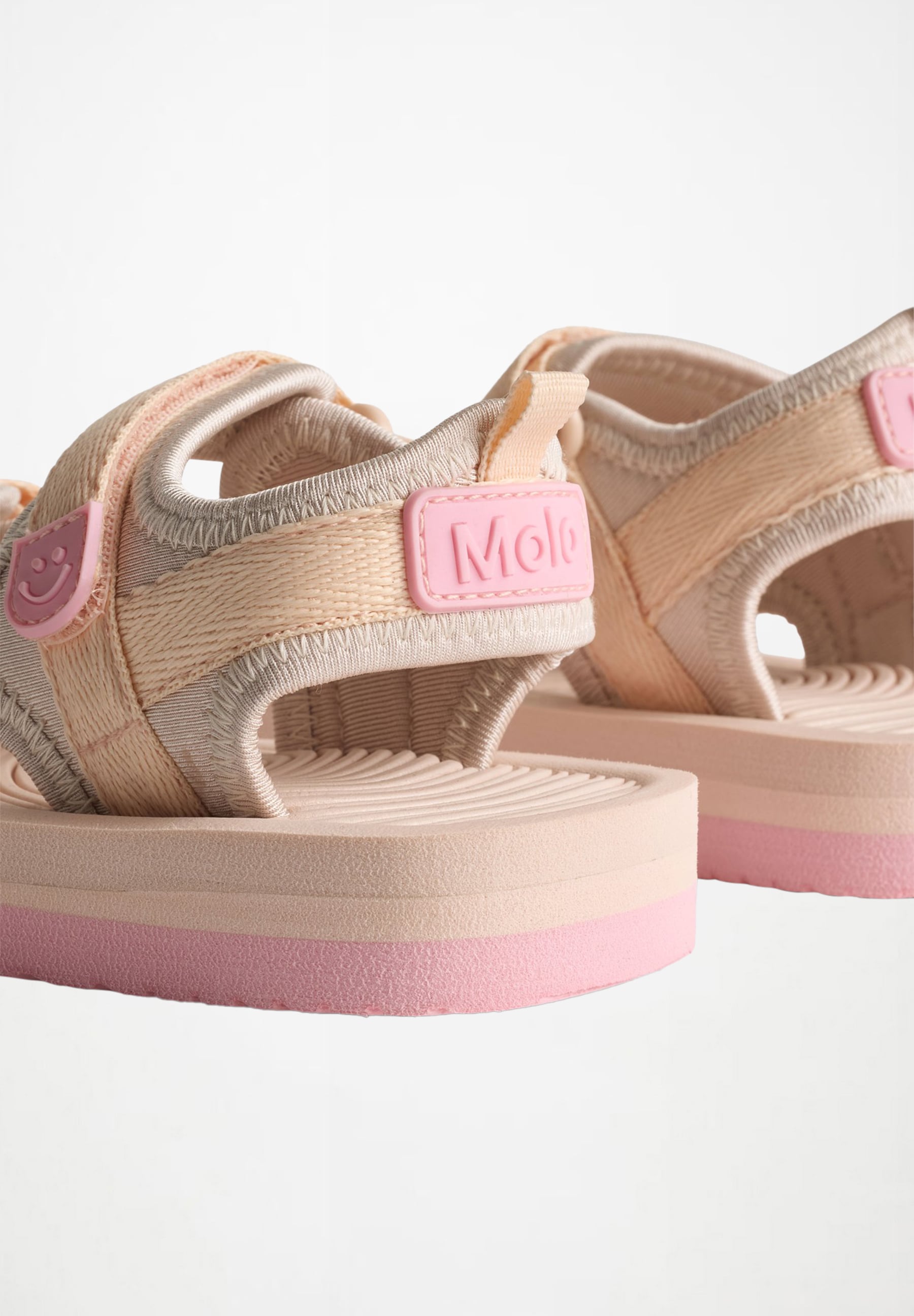 Легкие и спортивные детские сандалии из коллекции Molo для девочки. Розовые сандалии с подошвой из мягкого вспененного материала, неопреновыми вставками и практичной застежкой-липучкой на щиколотке и передней части стопы для оптимальной посадки. Состав: 60% ЭВА, 40% полиэстер.