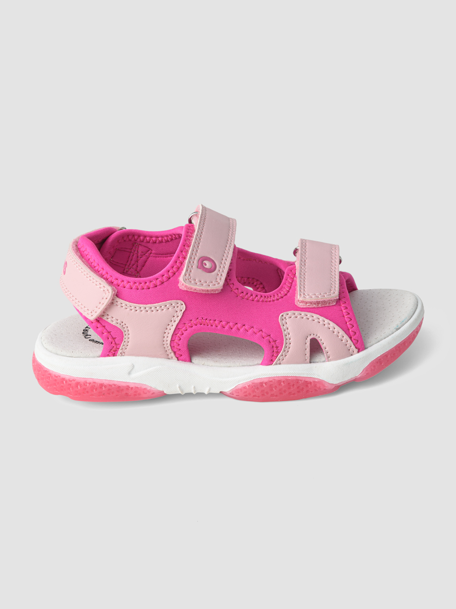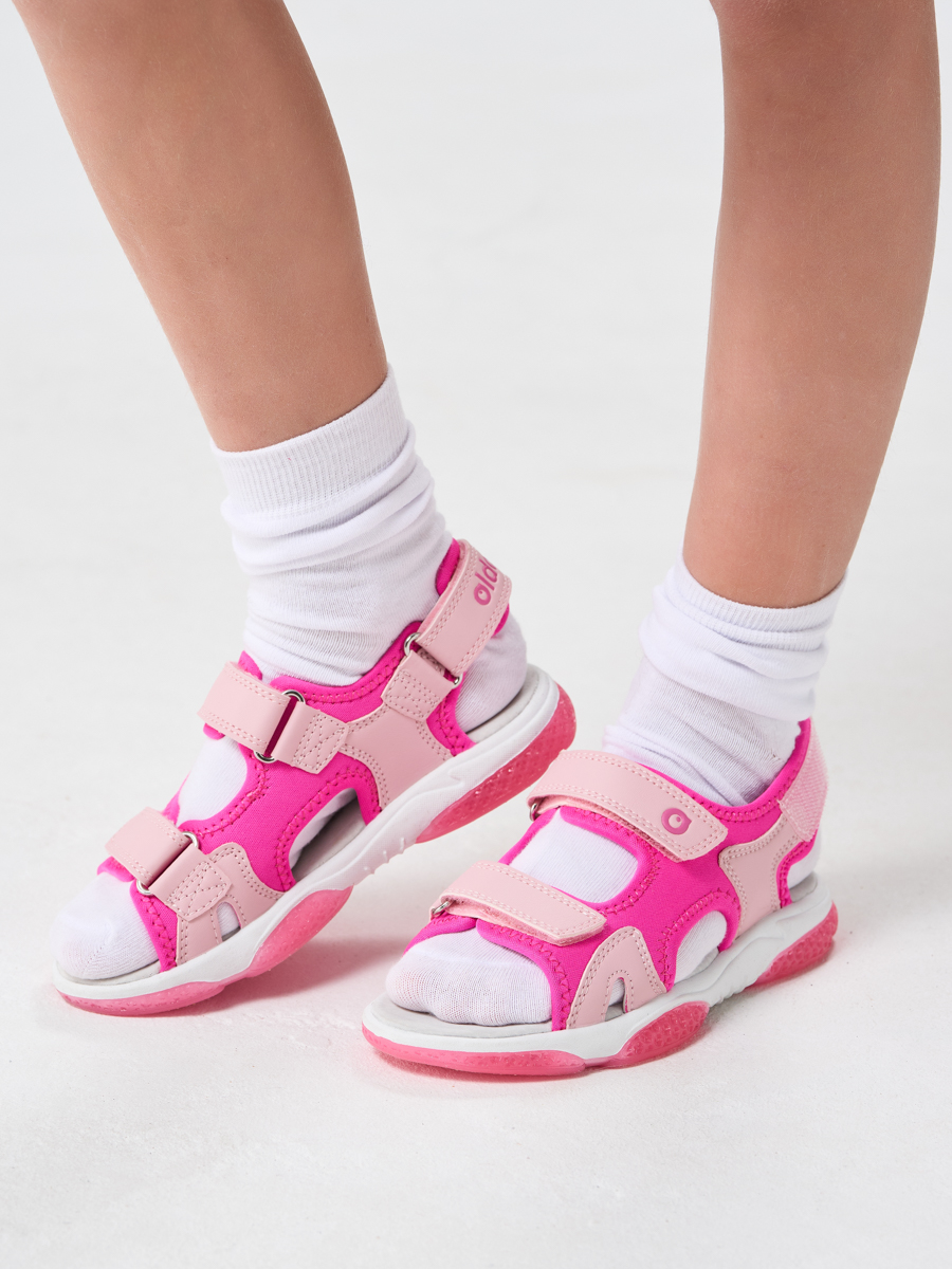 Сандалии Микко от Oldos — открытая модель для тёплой погоды и активных прогулок. Верх выполнен из прочных материалов, а стелька из натуральной кожи обеспечивает комфорт стопе. Застёжки на липучках помогают самостоятельно зафиксировать обувь. Подошва из термопластичной резины (TPR) дополнена светодиодами, которые загораются при движении и превращают прогулку в игру. Основной материал 100% полиэстер. Отделочный материал 100% полиуретан. Подкладка 100% хлопок. Стелька 100% натуральная кожа. Подошва TPR (термопластичная резина)+LED (светодиоды). Открытая модель. Застежка - липучки. Несъемная стелька. Петля на пятке для удобного надевания. На подошве светодиоды.
