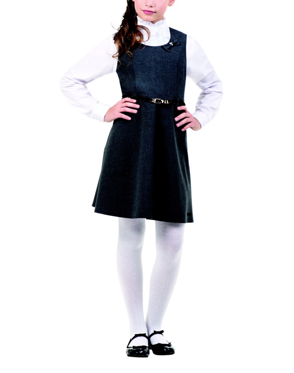 Сарафан для девочки от Tilli Stilli. Сарафан прилегающего силуэта на подкладке, отрезной по линии талии, с юбкой полусолнце. Перед и спинка сарафана с вытачками. В боковом шве застежка на потайную молнию. Декорирован маленькой металлической подвеской. В комплекте к сарафану стильный "кожанный" ремешок. Состав: 35% вискоза, 61% полиэстер, 4% эластан; подкладка: 45% вискоза, 55% полиэстер.