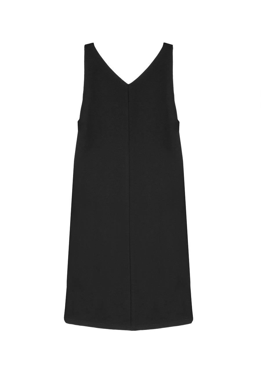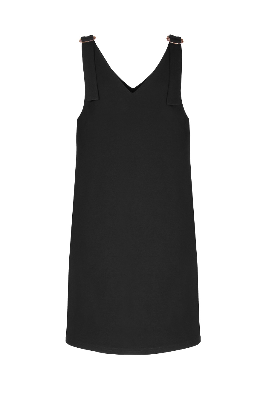 Сарафан А-силуэта из поливискозного трикотажного полотна. Бретели на плечах регулируемые пряжкой. С прорезными карманами по бокам.