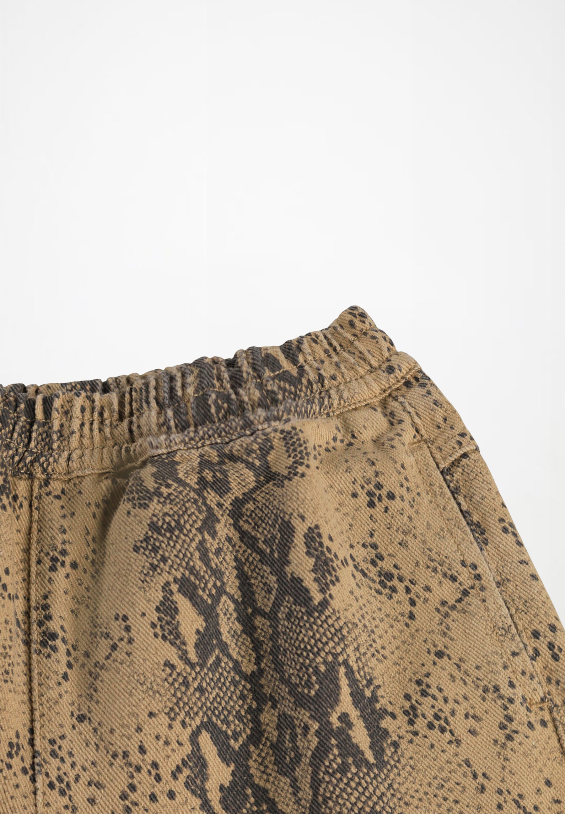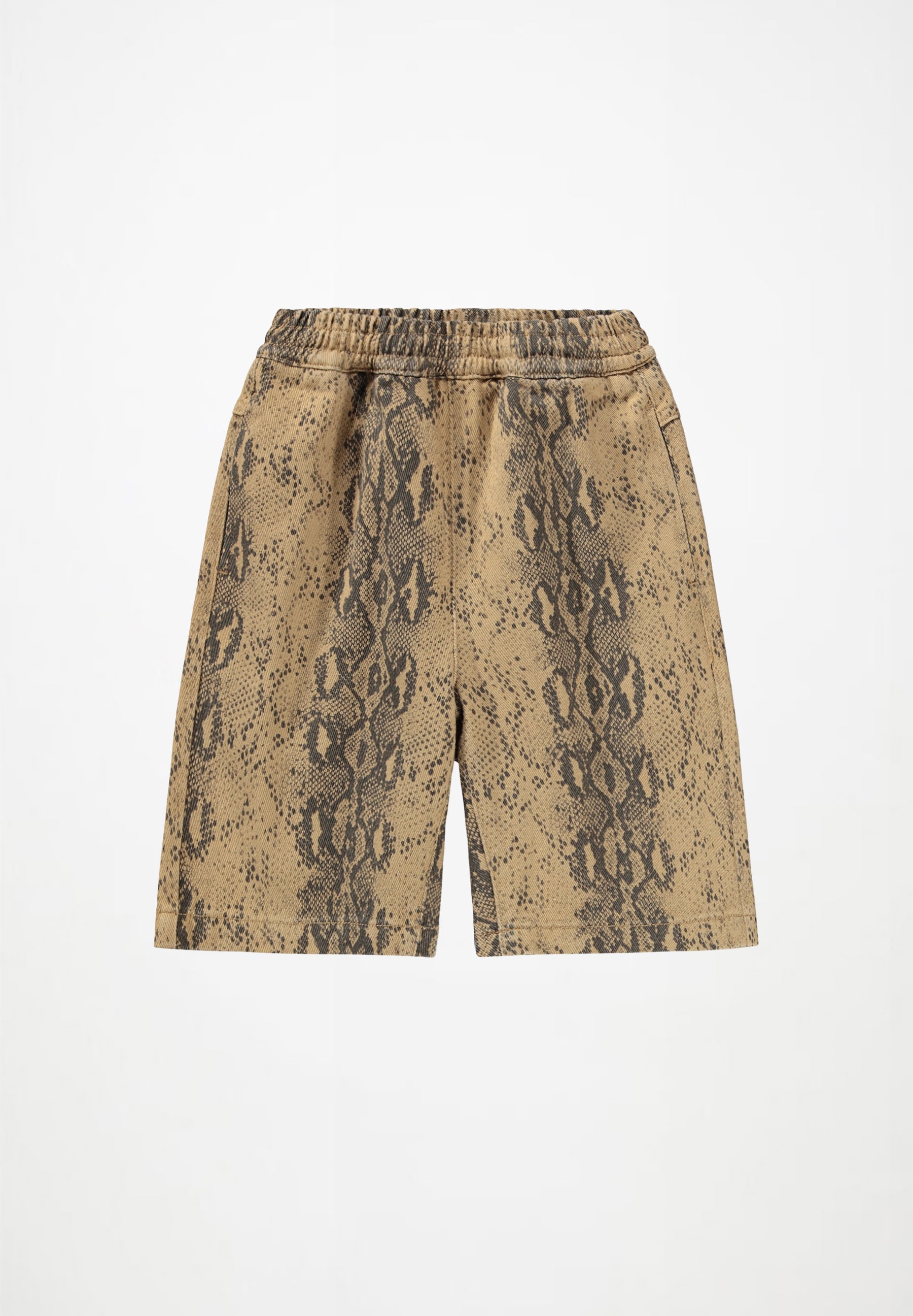 Шорты Molo для мальчика. Коричневые шорты из мягкого хлопка с принтом под змеиную кожу, широким эластичным поясом и внутренней кулиской на талии для регулировки посадки. Шорты с карманами по бокам и сзади, свободного кроя, не сковывают движения. Состав: 90% хлопок, 10% вискоза.