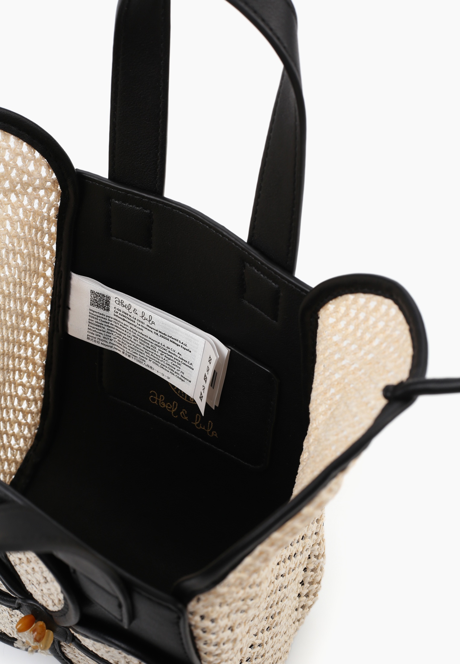 Сумка из коллекции Abel&Lula выполнена из полипропилена и искусственной кожи контрастных цветов. Модель декорирована крупным цветком. Детали: 1 отделение на завязках, без подкладки, 1 слот для карты внутри. Ширина-16.5 см. Высота-25 см. Ширина дна-5.5 см. Длина ручек-28 см.