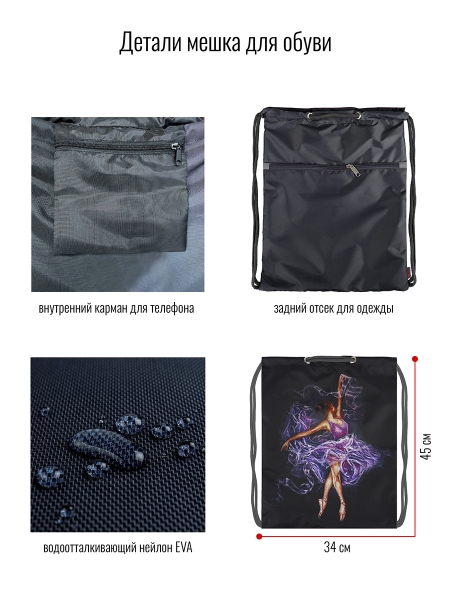 Мешок-рюкзак для сменной обуви от российского бренда BagRio отлично подойдет для хранения сменной обуви, для спортивной формы или прогулок. Мешок имеет размеры 45х34 см. Выполнен из качественного влагоустойчивого материала и имеет длительный срок службы. Модель имеет яркую расцветку, устойчивую к частым стиркам (не выцветает). Основное отделение затягивается толстыми шнуром, которые дополнительно выполняют функцию лямок, внешний карман застегивается на молнию. Мешок имеет внутренний карман на молнии для мелочей и телефона. Мешок-рюкзак удобно носить на плече или как рюкзак на спине, а также за ручку. Для безопасного использования в любое время суток, мешок дополнен светоотражающими элементами, которые обеспечивает безопасность в условиях недостаточного освещения, сделают его видимым на дорогах в свете автомобильных фар. Подростковые мешки для обуви бренда BagRio с модными принтами составят комплект к школьным ранцам и пеналам.