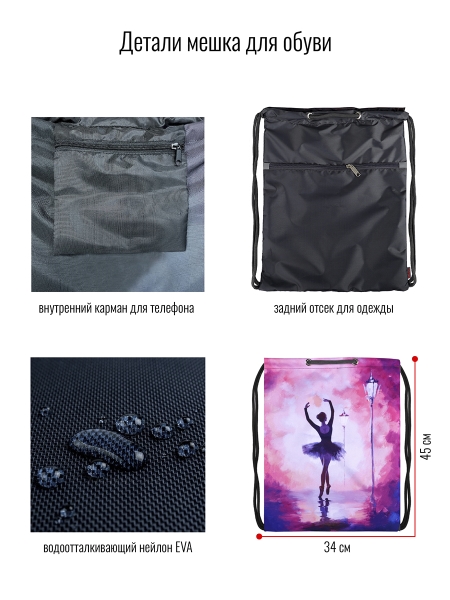 Мешок-рюкзак для сменной обуви от российского бренда BagRio отлично подойдет для хранения сменной обуви, для спортивной формы или прогулок. Мешок имеет размеры 45х34 см. Выполнен из качественного влагоустойчивого материала и имеет длительный срок службы. Модель имеет яркую расцветку, устойчивую к частым стиркам (не выцветает). Основное отделение затягивается толстыми шнуром, которые дополнительно выполняют функцию лямок, внешний карман застегивается на молнию. Мешок имеет внутренний карман на молнии для мелочей и телефона. Мешок-рюкзак удобно носить на плече или как рюкзак на спине, а также за ручку. Для безопасного использования в любое время суток, мешок дополнен светоотражающими элементами, которые обеспечивает безопасность в условиях недостаточного освещения, сделают его видимым на дорогах в свете автомобильных фар. Подростковые мешки для обуви бренда BagRio с модными принтами составят комплект к школьным ранцам и пеналам.