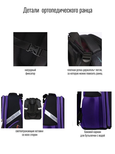 Школьный ранец российского бренда BagRio специально разработан для детей, которые учатся в начальной и средней школе. Школьный ранец вмещает все необходимые форматы книг и папок. •Жесткая конструкция с ортопедической спинкой. •Нагрудный фиксатор способствуют равномерному распределению нагрузки. • В нижней части ранца установлены пластиковые ножки.• Рюкзак имеет лямки анатомической формы с дышащей тканью, с регулировкой по длине. • Ранец выполнен исключительно из высококачественных материалов, является гипоаллергенным. • Рельефная ортопедическая спинка с каналами для циркуляции воздуха и сетчатой мембраной. • В основном, самом большом отделении расположены жесткие разделители в переднем отделении предусмотрен органайзер. •Два боковых кармана (с одной стороны сетчатый, со второй на молнии). •Усиленная ручка обеспечивает надежную фиксацию в руке ребёнка, а также имеется дополнительная петля, чтобы повесить ранец на крючок. •По всей поверхности ранца (со всех сторон) расположены светоотражающие элементы. Ранец выполнен из влагостойкого материала. Он отлично выдерживает стирку в машине, при 30 градусах.