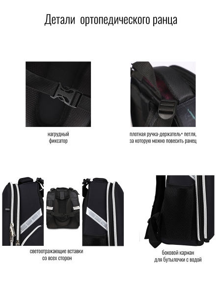 Школьный ранец российского бренда BagRio специально разработан для детей, которые учатся в начальной и средней школе. Школьный ранец вмещает все необходимые форматы книг и папок. •Жесткая конструкция с ортопедической спинкой. •Нагрудный фиксатор способствуют равномерному распределению нагрузки. • В нижней части ранца установлены пластиковые ножки.• Рюкзак имеет лямки анатомической формы с дышащей тканью, с регулировкой по длине. • Ранец выполнен исключительно из высококачественных материалов, является гипоаллергенным. • Рельефная ортопедическая спинка с каналами для циркуляции воздуха и сетчатой мембраной. • В основном, самом большом отделении расположены жесткие разделители в переднем отделении предусмотрен органайзер. •Два боковых кармана (с одной стороны сетчатый, со второй на молнии). •Усиленная ручка обеспечивает надежную фиксацию в руке ребёнка, а также имеется дополнительная петля, чтобы повесить ранец на крючок. •По всей поверхности ранца (со всех сторон) расположены светоотражающие элементы. Ранец выполнен из влагостойкого материала. Он отлично выдерживает стирку в машине, при 30 градусах.