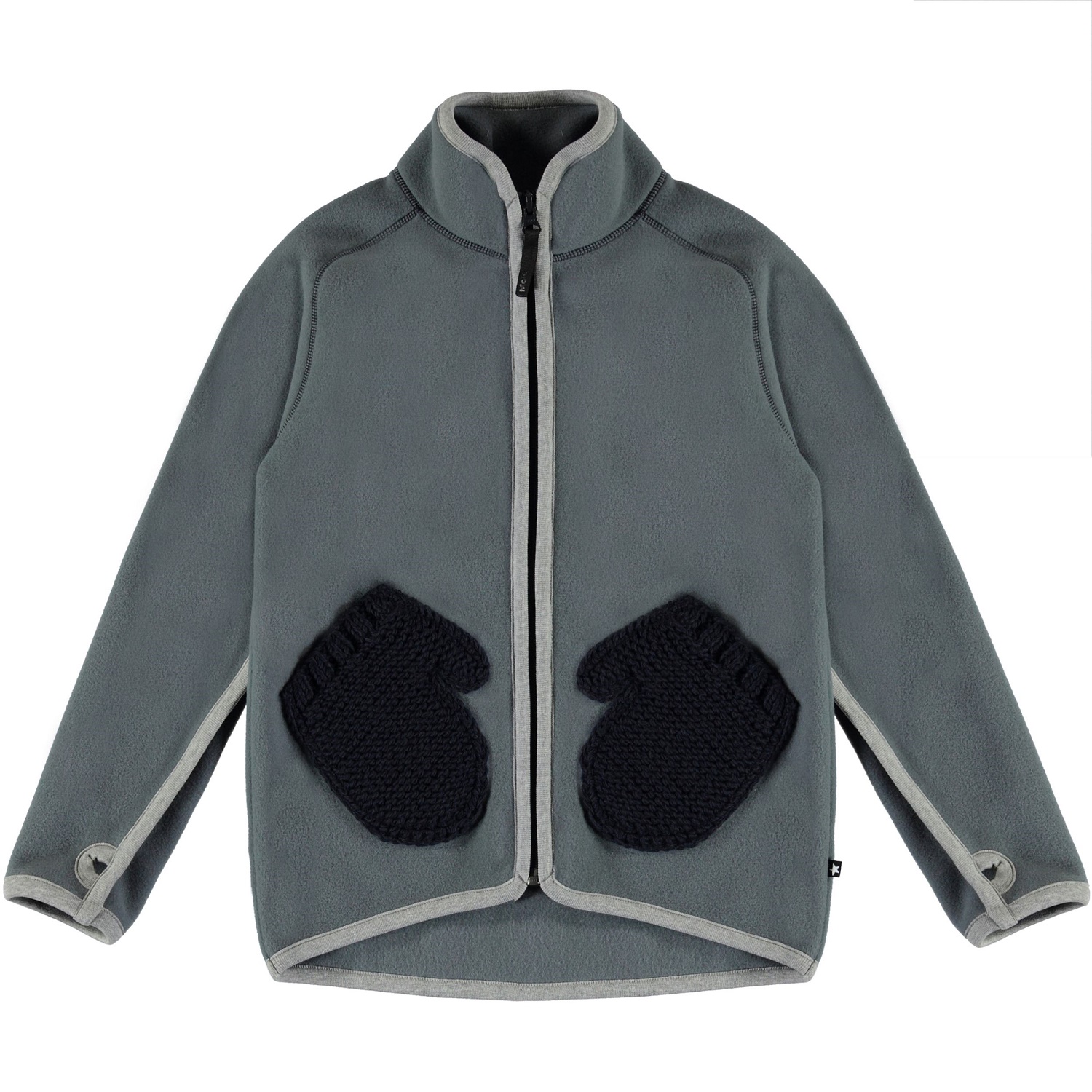 Куртка флисовая Molo Ushi  идеально подойдет для ребенка в качестве промежуточного слоя при повышении отрицательной температуры воздуха. Два кармана в виде вязаных варежек; безопасная молния с защитой шеи и подбородка; рукава - реглан; эластичные трикотажные манжеты; хорошо отводит влагу.