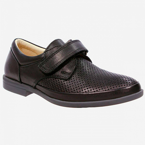 Полуботинки из натуральной кожи- незаменимый элемент школьной формы. Перфорированный верх, подкладка и стелька выполнены из натуральной кожи и обеспечат максимальную терморегуляцию. Легкая и гибкая серая подошва не оставляет следов. Классическая модель полуботинок отлично сочетается как со школьной формой, так и с повседневной одеждой.