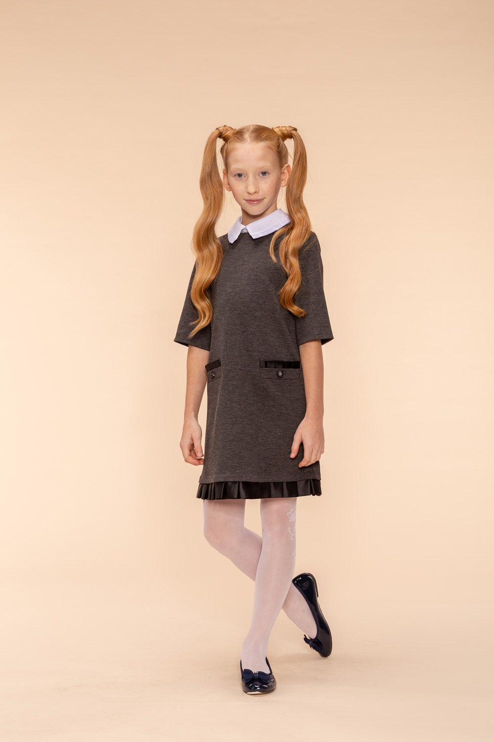 Стильное школьное платье в сером цвете от производителя Letty. Платье силуэт прямой, рукав короткий. воротник на пуговицах снимается. Состав ткани 65% вискоза, 30% нейлон, 5% спандекс.
