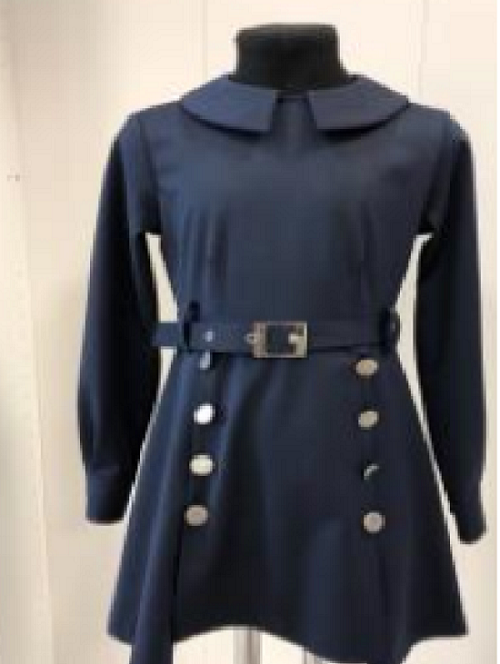 Стильное платье темно-синего цвета для девочки-подростка. Расклешенного силуэта, с ремешком, сквозная застёжка на пуговицы. Низ платья декорирован пуговицами. Удобного кроя, рукав с манжетами. Выполнена модель из вискозы с добавлением эластана.