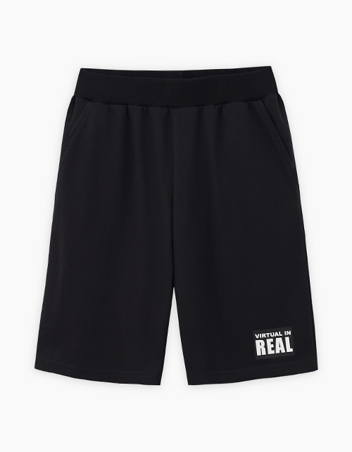 Чёрные шорты от BellBimbo для мальчика. Базовая модель прямого силуэта со средней посадкой. Комфортное изделие на мягком эластичном поясе. Карманы-хулиганы. Деликатный шрифтовой принт. Идеально впишутся в любой гардероб ребёнка. Состав: 95% хлопок, 5% эластан.