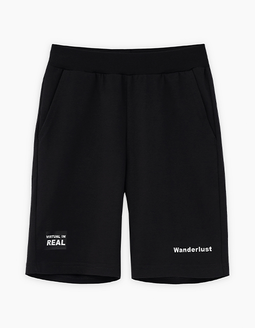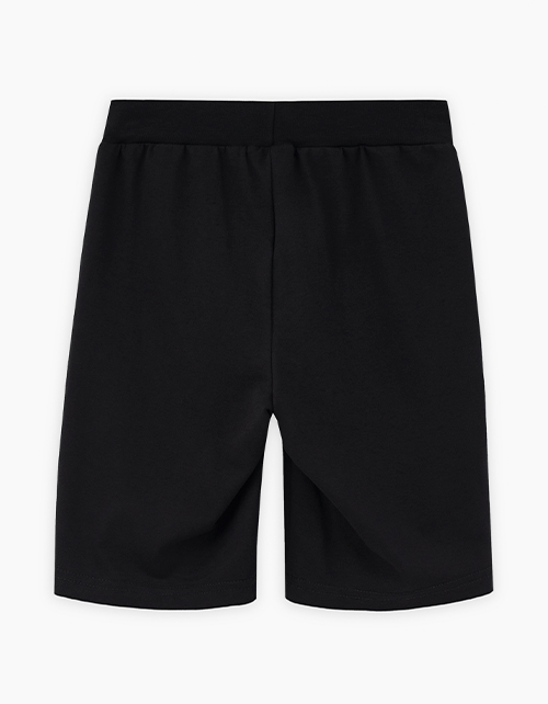 Чёрные шорты от BellBimbo для мальчика. Комфортная прямая модель. Изделие на мягком эластичном поясе, со средней посадкой. Шорты дополнены карманами-хулиганами. Модель декорирована авторским шрифтовым принтом. Состав: 95% хлопок, 5% эластан.