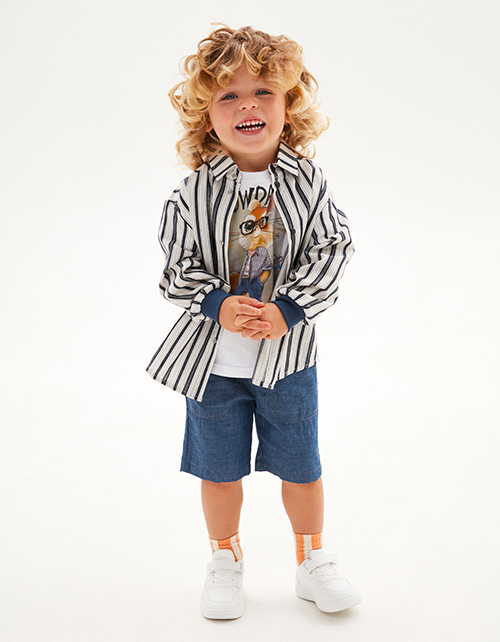 Шорты из облегчённой джинсовой ткани от BellBimbo для мальчика. Модель прямого силуэта. Изделие на мягком поясе, со средней посадкой. Шорты дополнены карманами-хулиганами. Состав: 100% хлопок.