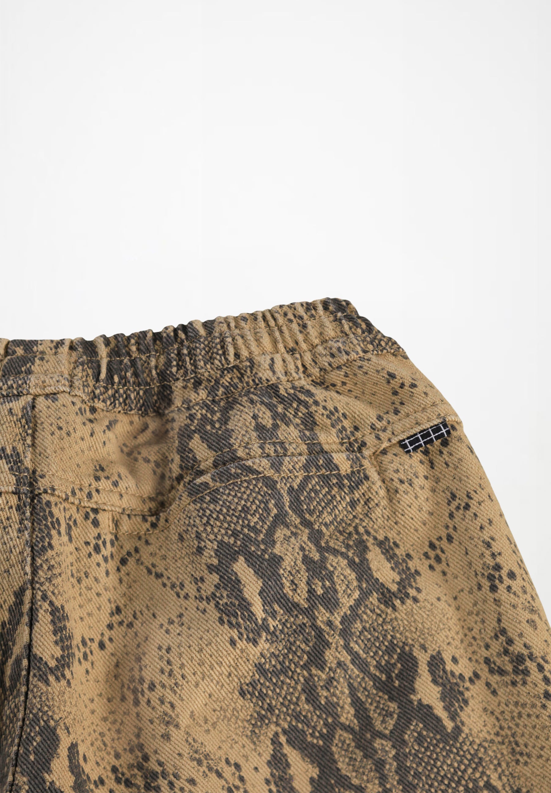 Шорты Molo для мальчика. Коричневые шорты из мягкого хлопка с принтом под змеиную кожу, широким эластичным поясом и внутренней кулиской на талии для регулировки посадки. Шорты с карманами по бокам и сзади, свободного кроя, не сковывают движения. Состав: 90% хлопок, 10% вискоза.